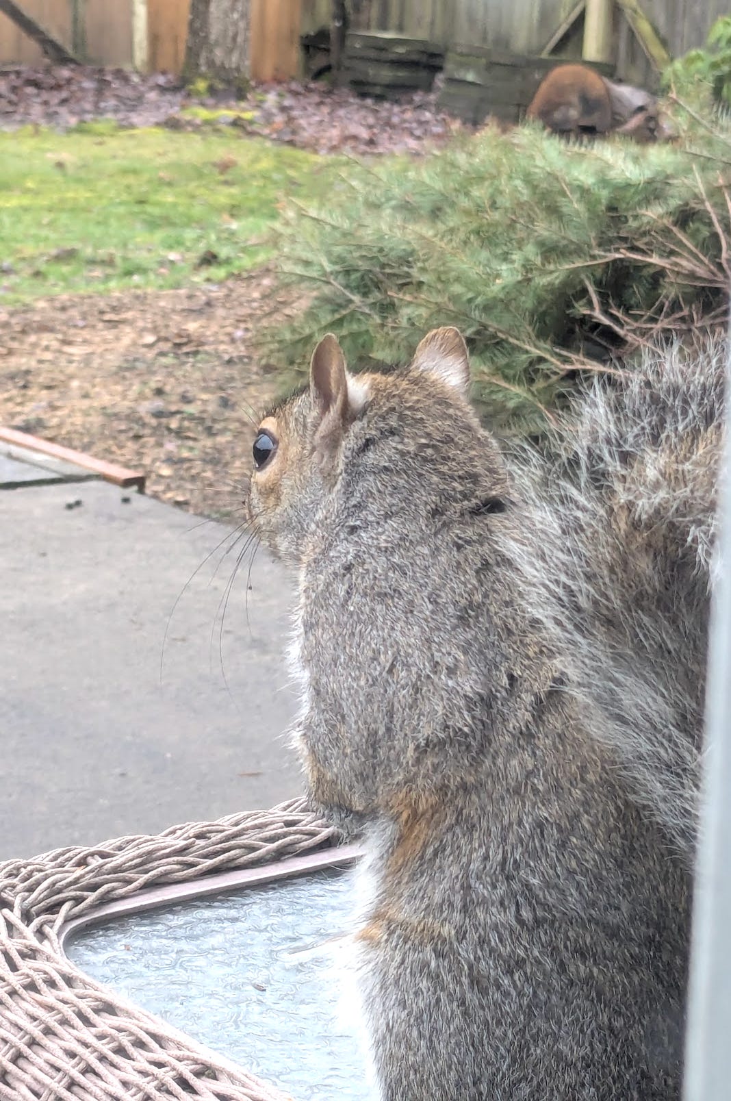 And this is Jolly Roger. I’ve trained him to come stand on the table by the back door when he wants a treat. He pretty much always wants a treat. Bruce mostly tolerates him, but every once in a while he chases the poor squirrel up a tree.