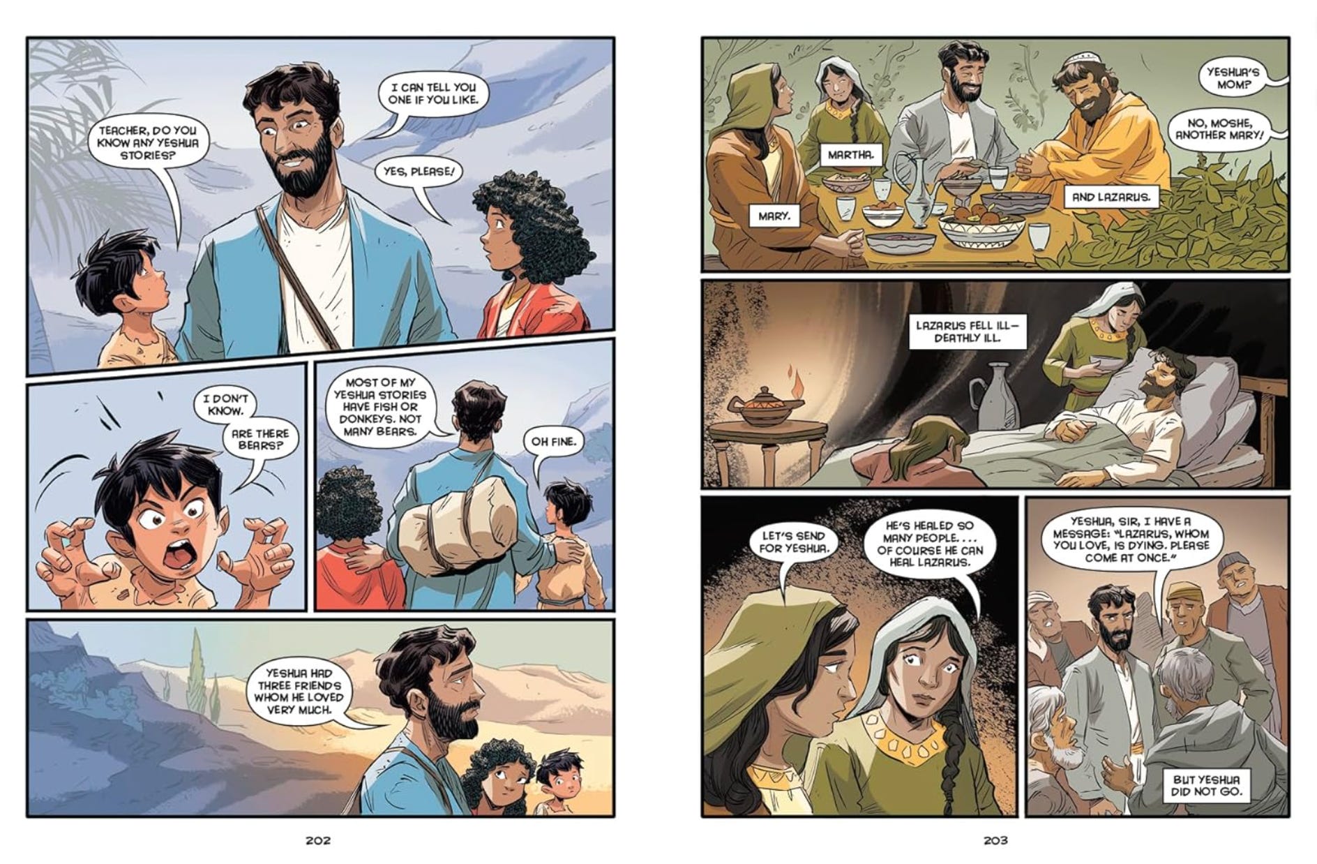 If you haven’t yet read GOD WITH US, it’s my first graphic novel and I am so pleased with how it turned out. It’s a beautifully illustrated story of the Emmaus Road… Jesus walks along with some of his followers who don’t recognize him. They tell him stories about himself, and he tells them stories from the scriptures (and, in the case below, he does tell one from his recent experience as well)
